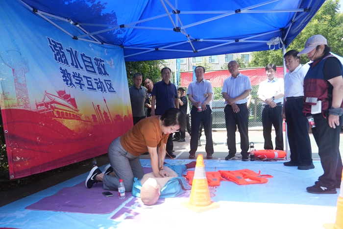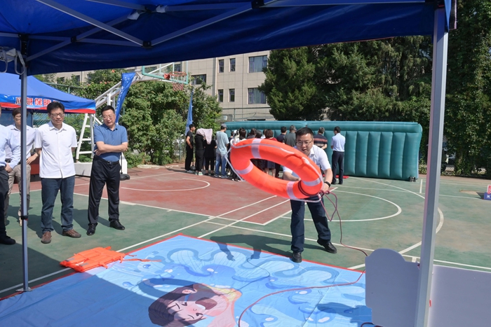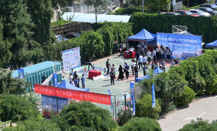 演練結(jié)束后,舉辦方在大廈籃球場(chǎng)開啟安全咨詢體驗(yàn)活動(dòng)。整個(gè)活動(dòng)共設(shè)置了6個(gè)項(xiàng)目,分別為擁擠踩踏應(yīng)急處置體驗(yàn)區(qū)(充氣帳篷)、消防隱患排查試驗(yàn)區(qū)、電動(dòng)車電池穿刺爆燃體驗(yàn)裝置、溺水自救互救教學(xué)培訓(xùn)區(qū)、醉酒交通AR模擬體驗(yàn)、安全標(biāo)志互動(dòng)區(qū)?;顒?dòng)現(xiàn)場(chǎng)氣氛熱烈,盡管天氣炎熱,但絲毫沒有減弱大家體驗(yàn)掌握應(yīng)急技能的熱情。