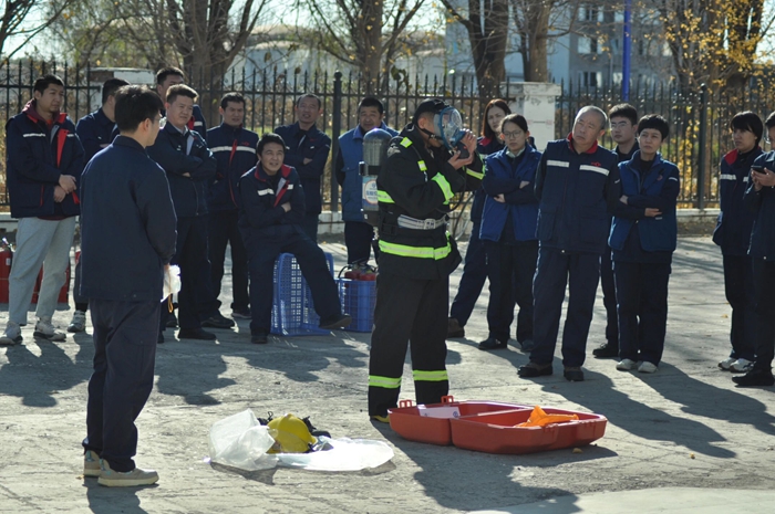 化研院首先進行了模擬辦公樓起火疏散演練。培訓伊始,消防站專業(yè)人員結(jié)合近年來典型的火災案例,深入淺出地講解了火災危害、報警程序、逃生注意事項等極具實用性的方式方法。