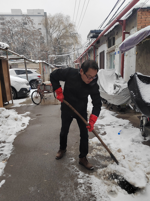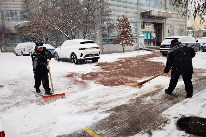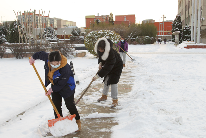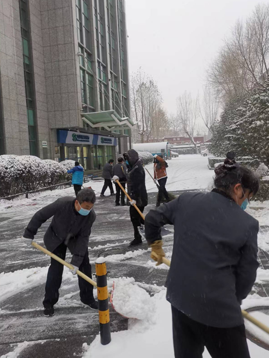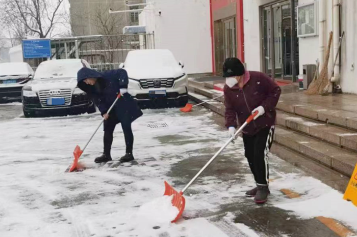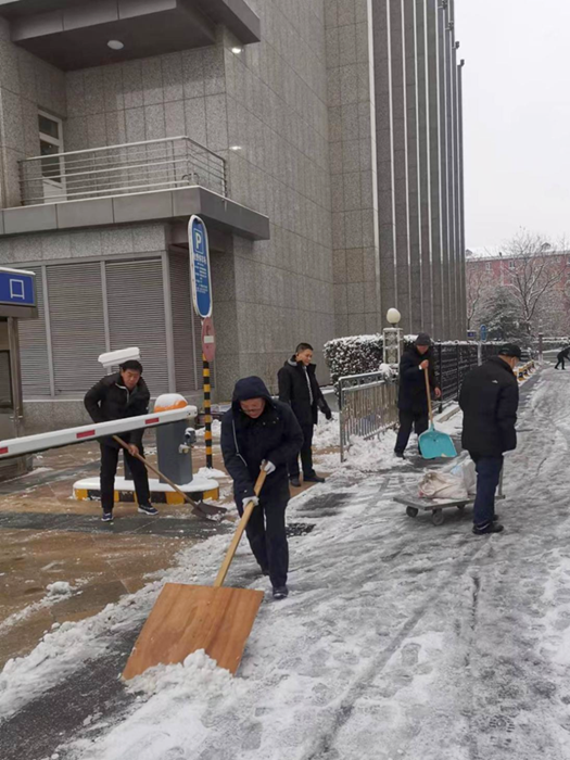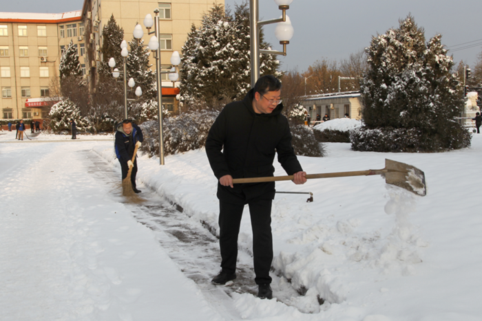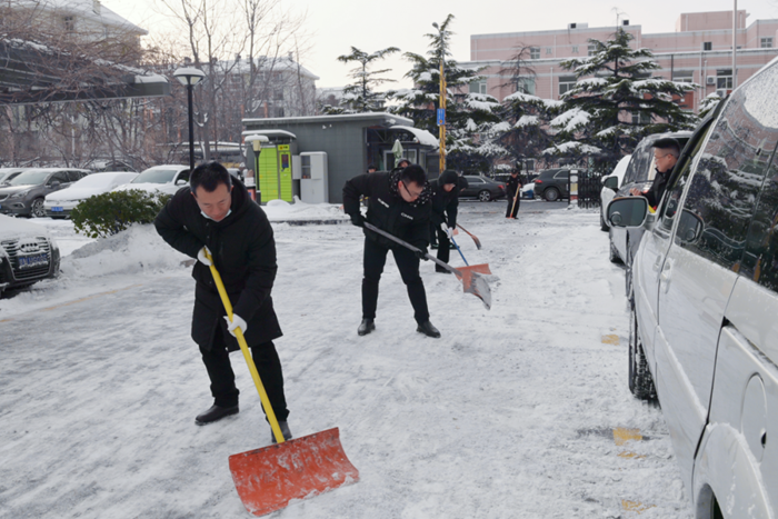 剛到單位的干部職工,紛紛拿起掃帚、鐵鍬,加入到掃雪除冰大“會戰(zhàn)”的隊(duì)伍中。大家齊心協(xié)力、現(xiàn)場一片熱火朝天,干凈整潔的道路很快清掃出來,保證了干部職工出行安全。