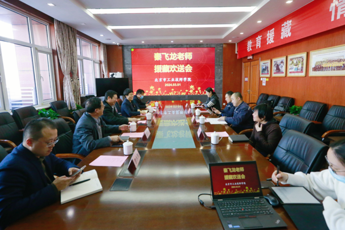 在啟程前,技師學院舉行秦飛龍老師援藏歡送會。北京化工集團黨委常委、組織部部長劉士義代表集團黨委歡送秦飛龍老師。技師學院有關(guān)領(lǐng)導、相關(guān)部室和專業(yè)系負責人參加歡送座談。