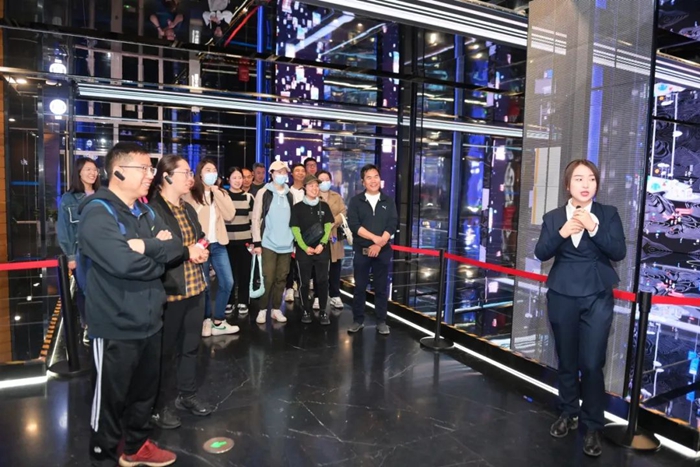 在講解員的引導下,參觀的同志們認真聆聽、親身感受森林書苑、元宇宙體驗館、古典文獻館、藝術(shù)文獻館等區(qū)域的設計理念,全視角觀摩智能化立體書庫為讀者提供的便捷、高效的服務,沉浸式體驗“數(shù)智賦能”“AI+圖書館”的跨界融合新模式。