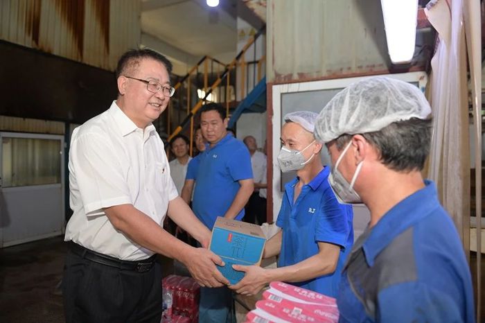 7月9日下午,北京化工集團(tuán)黨委書記、董事長(zhǎng)陳宇,黨委副書記吳瑞峰,黨委常委、副總經(jīng)理韓寶海,黨委常委、紀(jì)委書記常延輝來(lái)到華騰橡塑,進(jìn)車間、到班組,親手將一份份清涼飲品送到一線職工手中。慰問(wèn)過(guò)程中,陳宇詳細(xì)了解一線職工工作生活情況,對(duì)大家冒著高溫酷暑,以高度的責(zé)任感和飽滿的工作熱情堅(jiān)守一線給予充分肯定。陳宇叮囑大家既要高質(zhì)量完成好本職工作,又要時(shí)刻關(guān)注身心健康,集團(tuán)各級(jí)黨組織和工會(huì)組織要從各方面確保防暑降溫工作落到實(shí)處,保證干部職工健康安全。