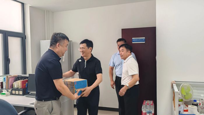 楊旭輝對(duì)化研院干部職工能夠從集團(tuán)大局出發(fā),在極短的時(shí)間內(nèi)無(wú)條件搬離工作多年的辦公區(qū)域,為集團(tuán)“三個(gè)北化”建設(shè)推進(jìn)創(chuàng)造條件給予了充分肯定。在慰問(wèn)過(guò)程中,楊旭輝將防暑降溫飲品送到職工手中,叮囑大家要注意勞逸結(jié)合,做好高溫防護(hù)。楊旭輝逐一走訪各部門,特別詢問(wèn)大家搬家后遇到的困難,以及需要集團(tuán)協(xié)調(diào)解決的問(wèn)題,并要求集團(tuán)相關(guān)部門要做好服務(wù)保障。