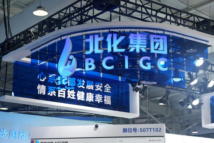 北京化工集團(tuán)所在的環(huán)境服務(wù)專題展位于首鋼園7號館,以“綠色生產(chǎn)力賦能地球家園”為分主題,匯聚了80多家知名企業(yè)。200余平米的集團(tuán)展位以“化工藍(lán)”為主色調(diào),“心系首都發(fā)展安全,情系百姓健康幸福”理念自信、大氣,突顯出北京化工集團(tuán)的國企擔(dān)當(dāng)和創(chuàng)新激情。